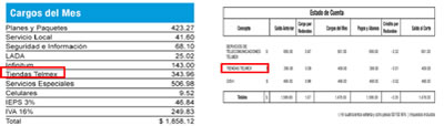 - En tu Recibo Telnor, en la tabla de Cargos del Mes en la página 1 y en la sección de Estado de Cuenta en la página 2