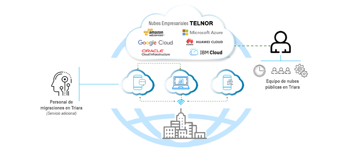Nos encargamos de la gestión de la infraestructura de tus Nubes Públicas a través de nuestros expertos en TRIARA, los cuales realizan cambios, administran, habilitan herramientas de monitoreo, brindan servicios de seguridad y respaldo dentro de la misma Nube.