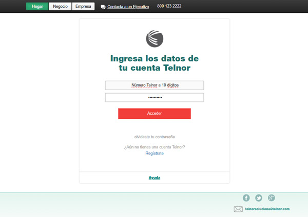 Paso 1. Para realizar el pago a través de Mi Telnor, inicia sesión con tu correo electrónico y contraseña.
