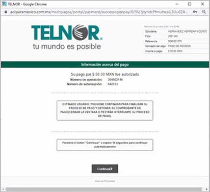Paso 6. Al realizar tu pago verás una pantalla de confirmación. Recuerda, pueden pasar hasta 24 horas en verse aplicado.