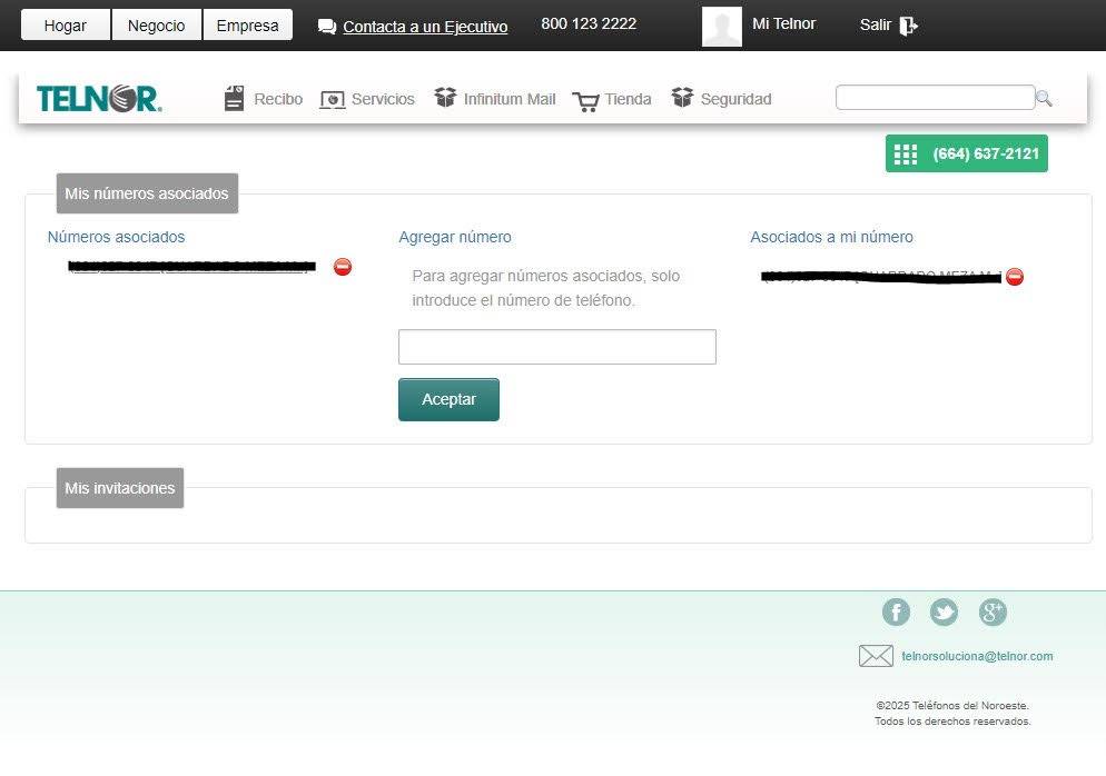 Nota: Si el número que ingresaste ya está asociado a otra cuenta Mi Telnor no se podrá realizar una nueva asociación, es necesario desvincularlo de la cuenta previa.