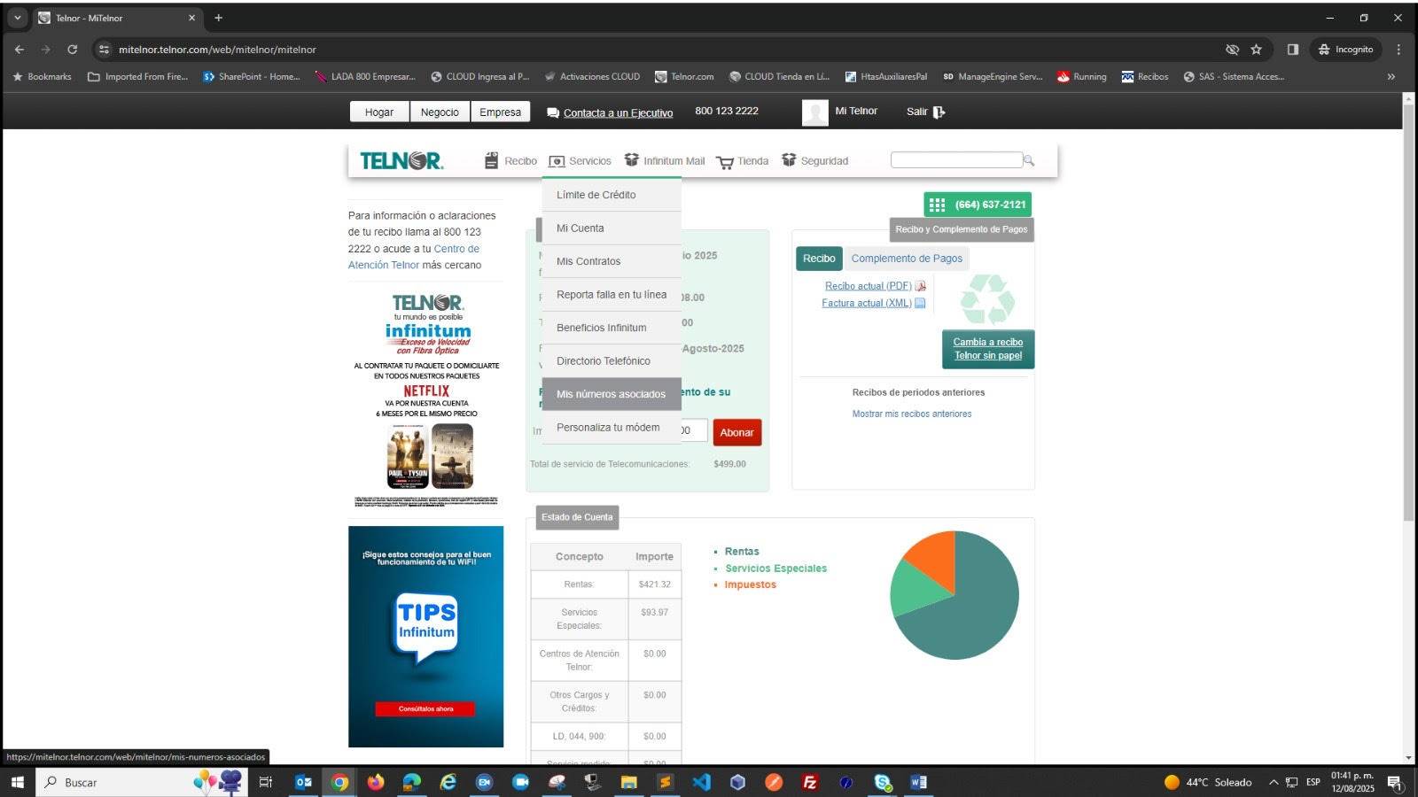 3. En el menú lateral izquierdo, selecciona la opción “Líneas Telnor asociadas” y captura el Número Telmex (10 dígitos), si ingresaste un teléfono correcto, aparecerá como “pendiente de activación”.